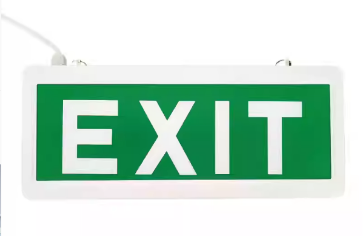 - High Visibility Design: Green background with bright white light for clear identification of exits in any environment.